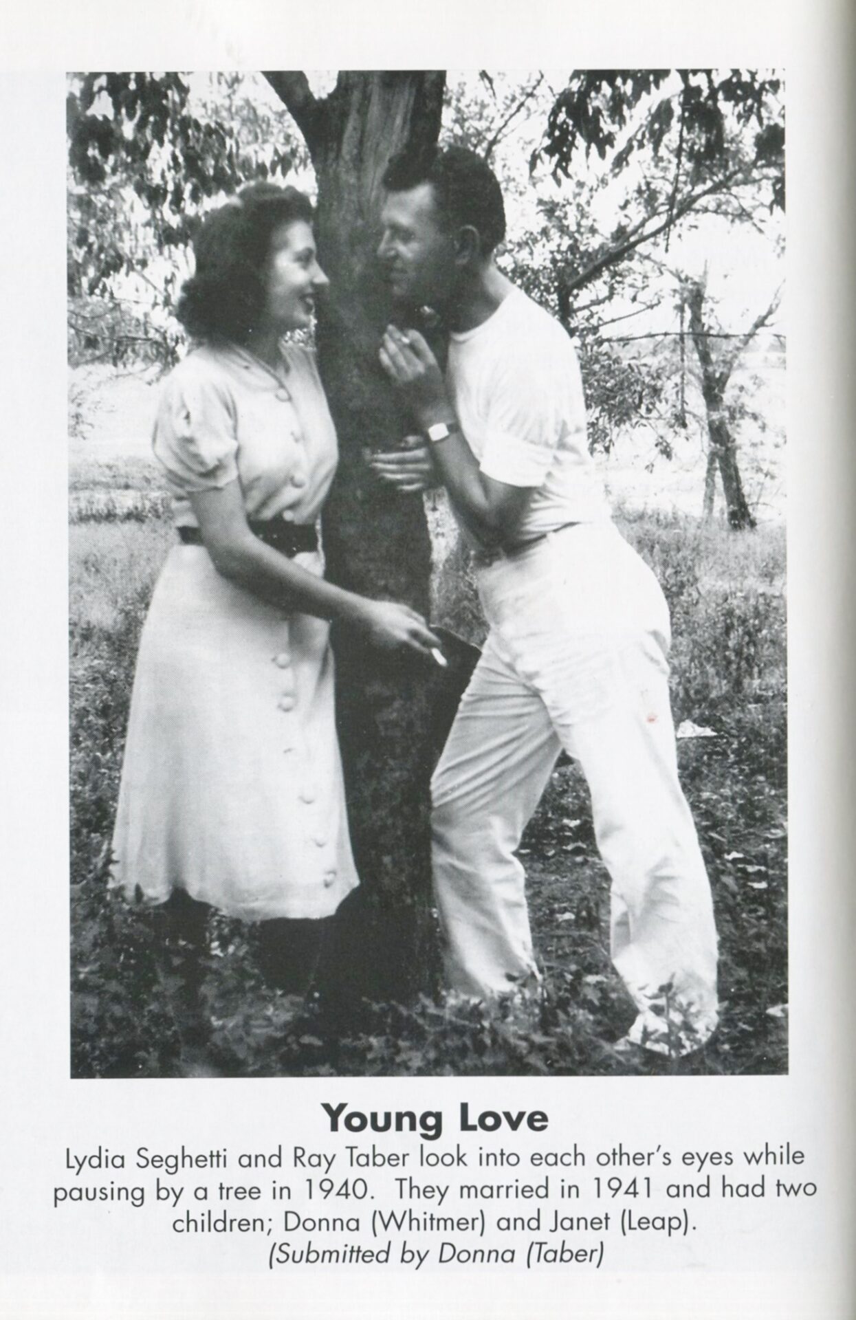 Lyda Seghetti and Ray Taber leaning agaist tree, ca. 1940. Featured in Plymouth Remembered, page 80.