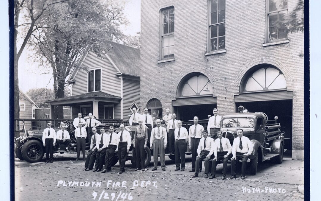 At the time, there was little by way of fire protection. Business owners simply accepted that a fire, once out of control, would destroy their buildings and typically their contents as well. A devastating fire in 1857 that consumed most of the downtown businesses convinced Plymouth town leaders of the need for a volunteer organization of firefighters. In February 1958, the Protection Hook and Ladder Company was formed with a total membership of 57. A bucket brigade was organized as a part of the group. A two-story frame building was built on the Adams Street riverbank.